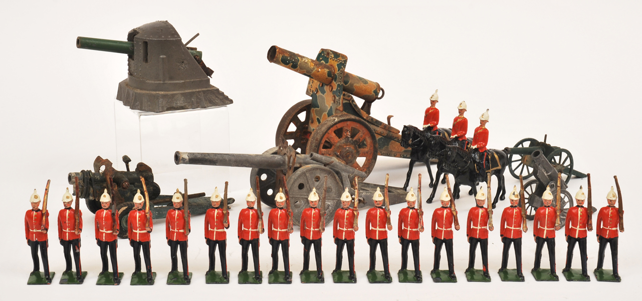 Zulu War, 1879 In Unmarked Red Britains Box; Three Britains Soldiers On Horseback; Five Britains Military Vehicles, Including Searchlight And Canons; And Three Others, All Unboxed (G-P) (12) -