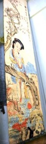 Lot Description:Chinese hand coloured scroll of a maiden standing under a tree