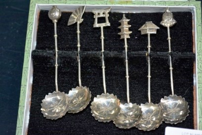 Lot #1471 - Boxed set of 6 Japanese silver teapsoons