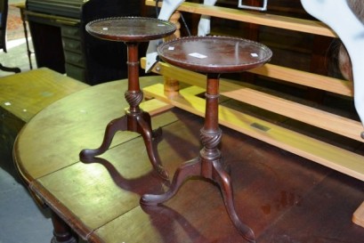 circular tray tops with castellated rims, on tripod bases, Georgian style, each 41.5cm. -