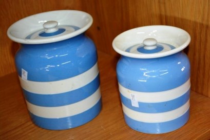 Lot Description:Pair of T G Green Cornishware kitchen canisters