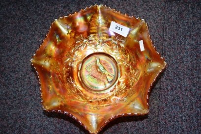 Lot #231 - Vintage Australian carnival glass bowl 'Magpie'