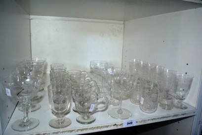 Lot #949 - Shelf lot: etched glassware incl. fern and fruit motif