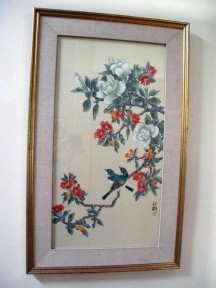 Lot Description:Framed Chinese painting pair of birds among blossoms