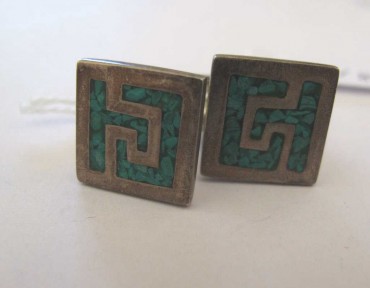 Lot Description:Pair of Mexican silver turquoise cufflinks