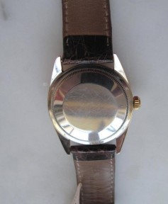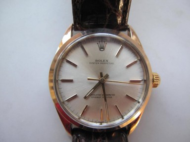 Lot Description:Rolex 14ct gold cased Oyster perpetual watch with brown crocodile strap
