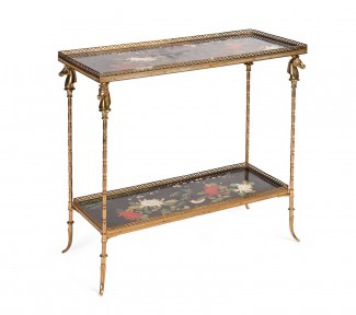 Lot Description:A fine and highly decorative bronze and Chinoiserie lacquer etagere, French circa 1920, by Maison Bagues, Paris