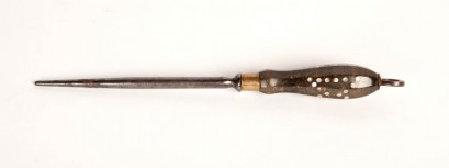 Lot Description:A brass inlaid horn and steel knife sharpener, French, 19th century