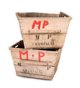 Lot Description:A pair of red and black Champagne stencilled baskets, French, circa 1900