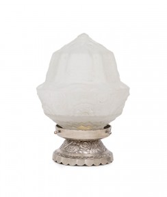 Lot Description:An Art Deco frosted glass and silver plated table lamp, French, circa 1925