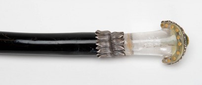 Lot #182 - A rare rock crystal, emerald gold and silver set ebonised walking cane, Indian, 19th Century