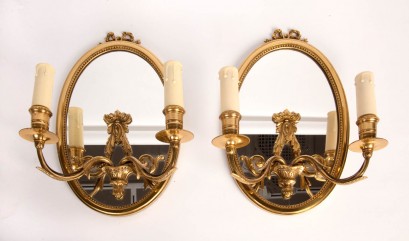 Lot Description:A pair of gilt bronze mounted oval mirror candle sconces, French, circa 1940