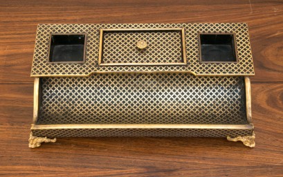 Lot #223 - A brass inlaid ink stand, French circa 1830