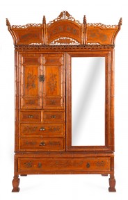 Lot Description:A highly decorative Chinese carved wardrobe with bamboo decoration, circa 1920