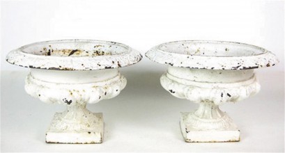 Lot Description:A pair of white painted cast iron garden urns, English or French, 19th century