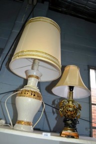Lot Description:2 table lamps - one white & gilt with crackle glaze