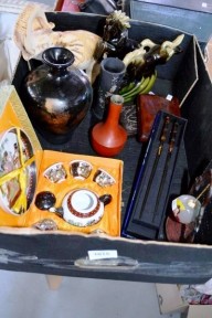 Lot Description:Box of Oriental: pair faux tortoishell chopsticks