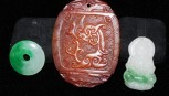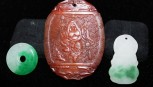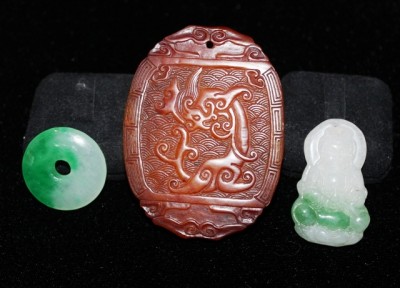 modelled in the form of a Buddha , a jadeite bi disc and one other piece (3) -