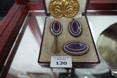 Lot #120 - Art deco late Art Nouveau boxed Austrian purple and white enamel decorated ladies mini hand mirror