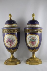 Lot Description:Pair of 19th Century Coalport Porcelain Urns and Covers