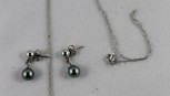 Lot #339 - 14ct Gold Black Pearl Earrings & Pendant