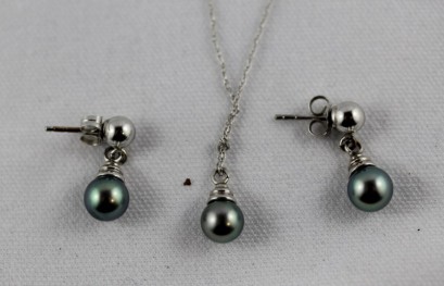 Lot Description:14ct Gold Black Pearl Earrings & Pendant