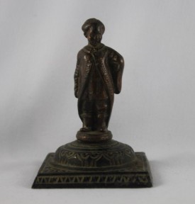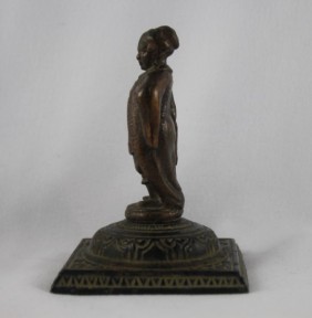 depicting standing oriental man, set on black painted base decorated with scrolls, h 10cm -