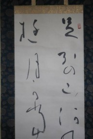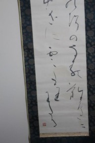 of rectangular form, depicting lines of calligraphy, with red chop mark -