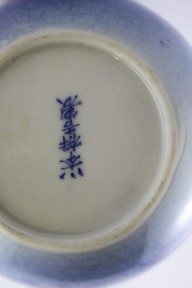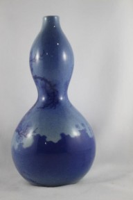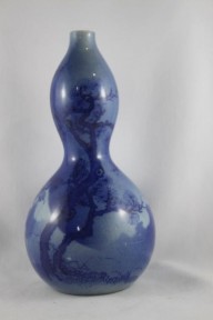 decorated with a landscape with fern trees, in tones of blue, marks to base, h 20cm -