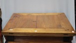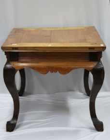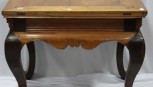 with square top, above a shaped apron, on four dark stained cabriole legs, h 81cm -