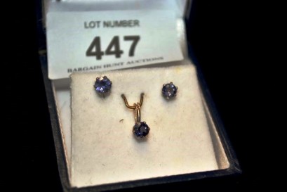 Lot #447 - Pendant & earring set to include a pair of sterling silver iolite set earrings and matching pendant