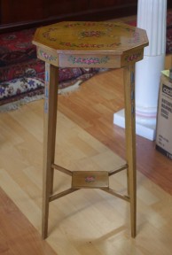 with painted decoration and cross banded inlay to top, 37.5 x 29.5cm, 76.5cm high -