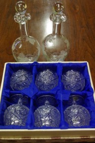 Lot #1707 - Pair of glass decanters and six crystal glasses