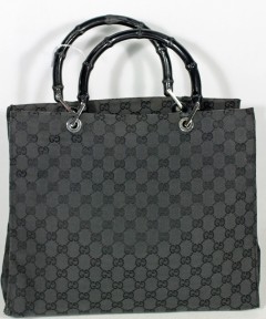 Lot Description:A Gucci Black GG Bamboo Handles Large Handbag