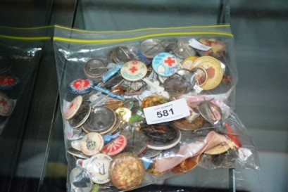 Lot #581 - Bag containing large collection of vintage tinnies badges etc