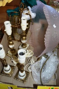 Lot Description:Box: 2 pairs brass & alabaster table lamps - no shades