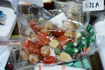 Lot Description:Multi coloured resin gemstone necklace & green & clear faceted bracelet