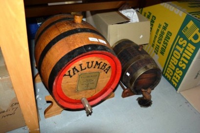 Lot Description:2 timber decorative wine barrels