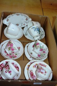 Lot Description:Box: cup & saucer settings: 3 trios - Queen Anne