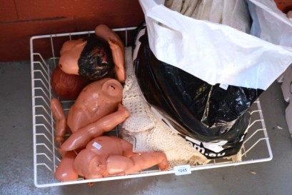 Lot #1045 - Wire crate: qty vintage linen & lace