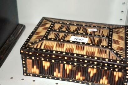 Lot #1087 - Vintage inlaid porcupine quill jewellery box