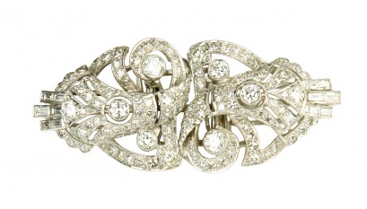 Lot Description:An impressive quality Art Deco platinum and diamond lady's estate dress clip/brooch