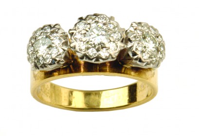 the three clusters set with a single round modern cut brilliant diamond and surrounded by 10 small single cut diamonds. TDW 0.74cts., valuation available. -