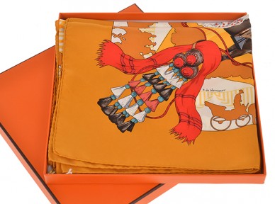 The 'Feria de Sevilla' design by Hubert de Watrigant in multi colours on a golden background, 90cm square, with box. -