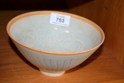 Lot Description:Chinese celadon glazed bowl with inscribed decoration