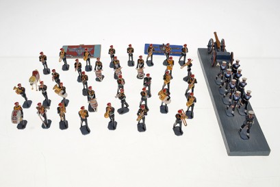 the majority military bands including Band and Colour Party of the Lancashire Fusiliers; Coldstream Band, 1815; Royal Scots Fusiliers; Band of the Lifeguards; Band of the Royal Paratroopers; and a Royal Naval Gun Team; approximately 150 pieces in total (VG-E) (a lot) All 5.4cm high -