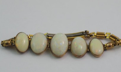 Lot Description:Vintage 9ct yellow gold 5 opal bracelet