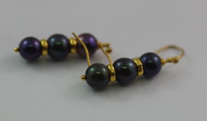 Lot Description:Silver gilt earrings with three Tahitian pearl