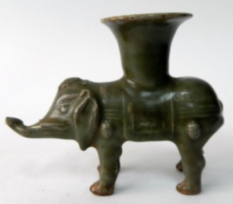 in the Form of an Elephant, the trumpet shaped holder rising from its back. The jewelled elephant with an upturned trunk .