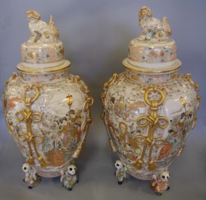 Lot Description:Pair of Satsuma Japanese lidded Urns